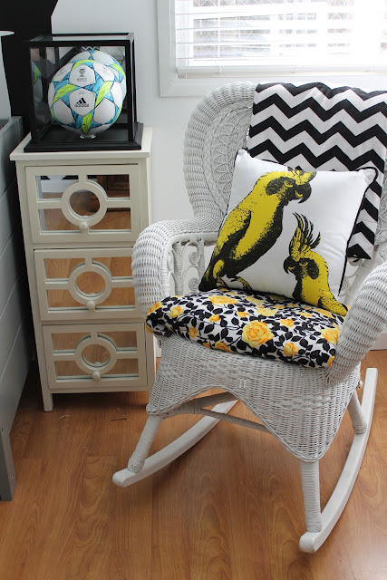 I scored this wicker rocking chair on Craigslist. This is actually going in the living room once we get our glider for the nursery in place. That one is more comfortable to fall asleep in and this one I thought would be perfect for the living room during the day time so I can watch both of the kids out there.